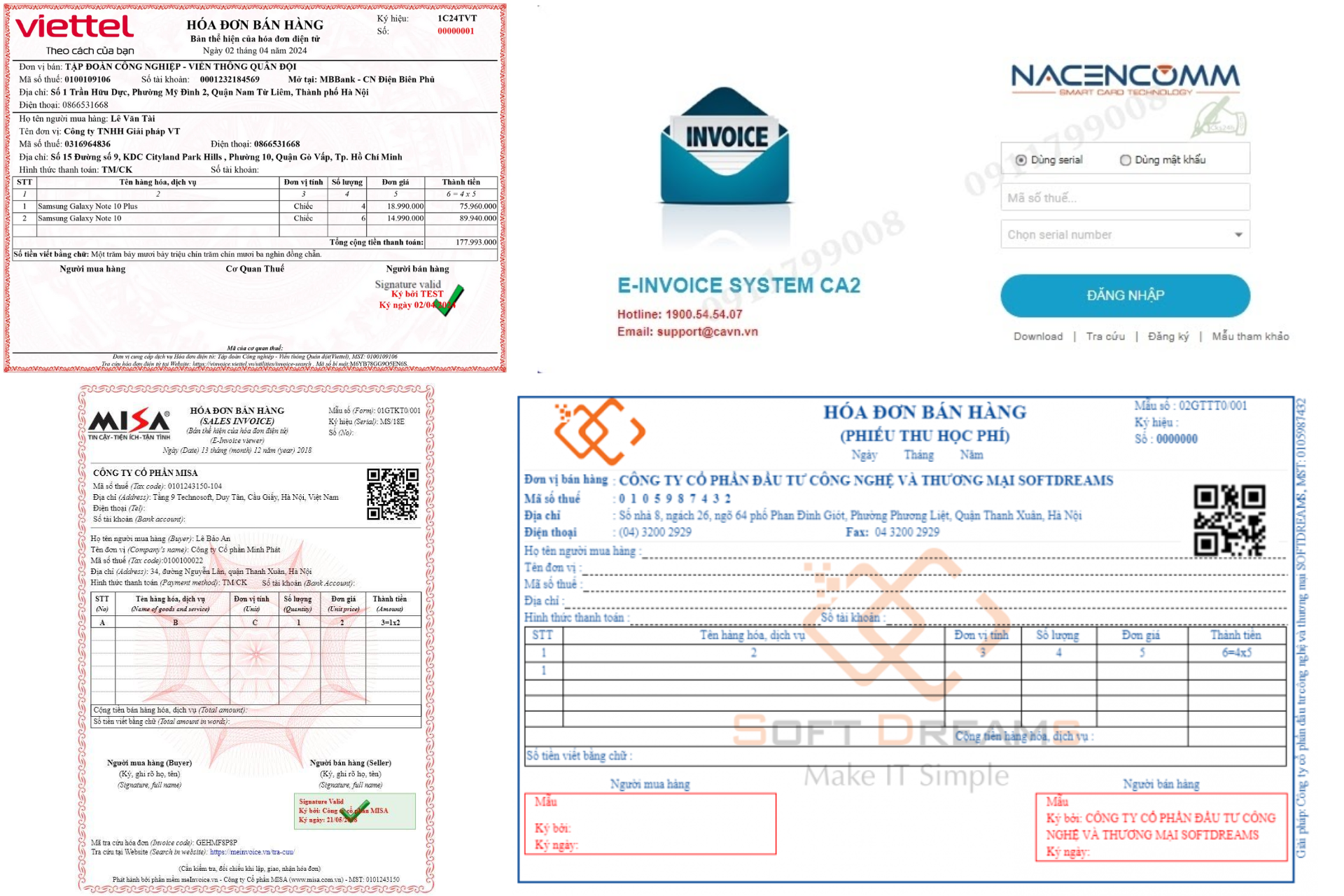 DentalFlow đang cung cấp các đơn vị xuất hóa đơn điện tử uy tín: Viettel (S-Invoice), Misa, CA2 E-invoice, Easy Invoice. Nha khoa hoàn toàn có nhiều sự lựa chọn phù hợp cho phòng khám của mình.